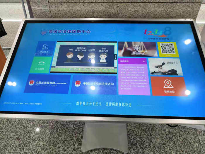 近日,晉城市法律援助中心觸摸屏系統(tǒng)已制作完成,正式上線運行。